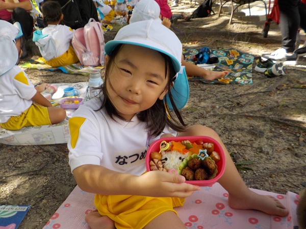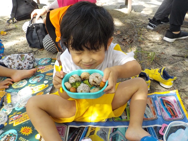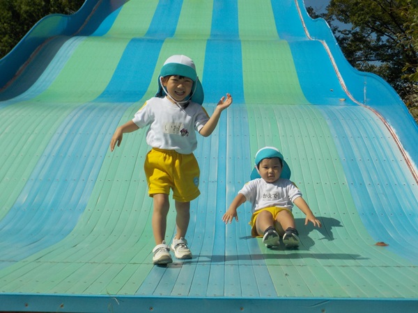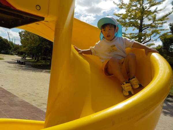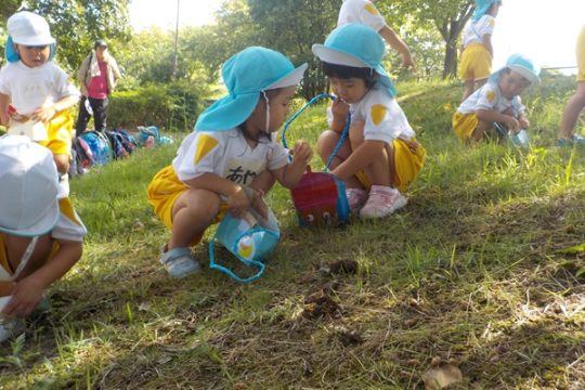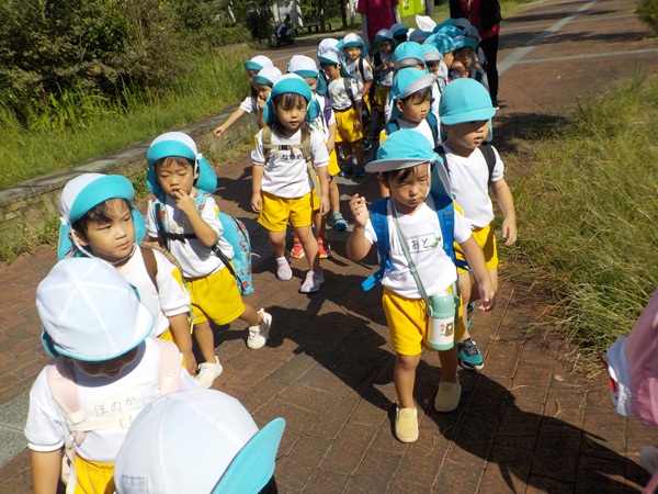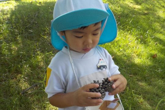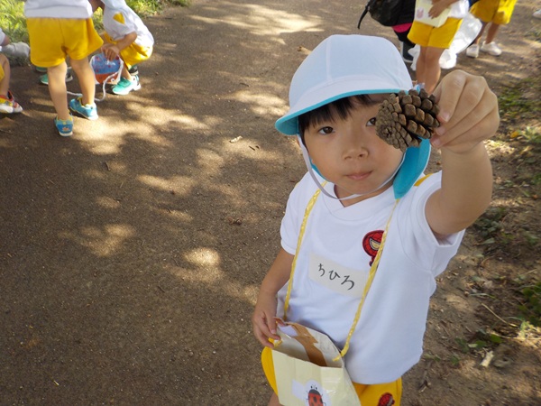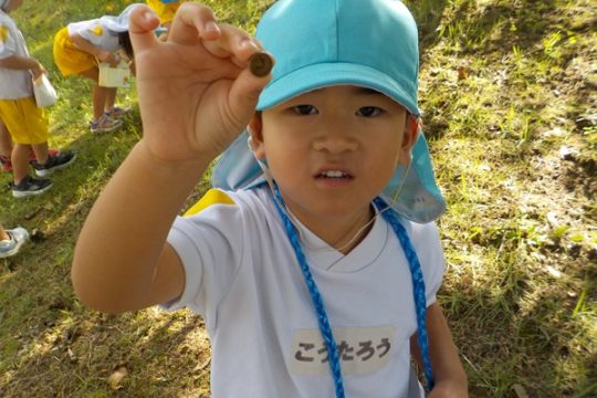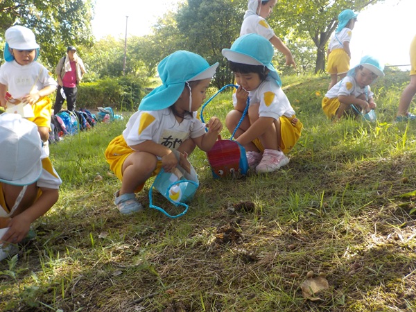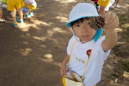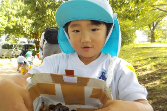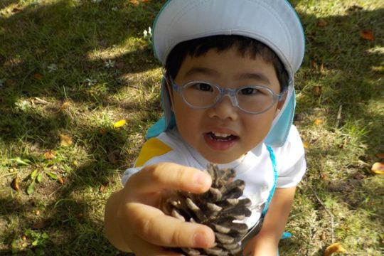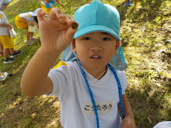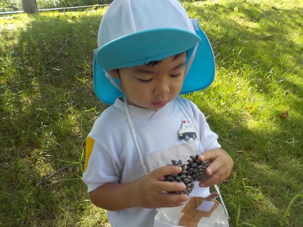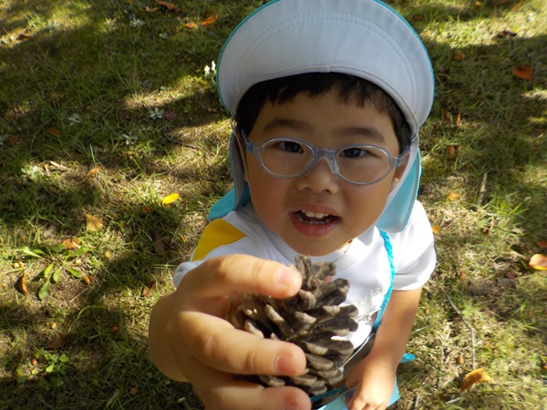 10月9日(木)に、箱崎公園へ行きました。春の遠足を初めて経験してから2回目の遠足でした。今回は、秋の自然物にもたくさん触れたり集めたりすることができました。どんぐりもたくさん落ちていて、どれを選ぼうか目移りしていたほどです。自然物に触れた後は、大きな滑り台で遊びました。公園で出会った小さい子に優しくしてあげる姿も見られ、成長を感じましたよ。また来年、遠足に行くことを心待ちにしているぱんだ組さんでした。