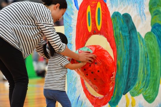 りす組さんは、大好きなはらぺこあおむしの世界で遊びました。途中橋を渡ったり、トンネルをくぐったり最後はかわいらしい蝶々に変身しました。